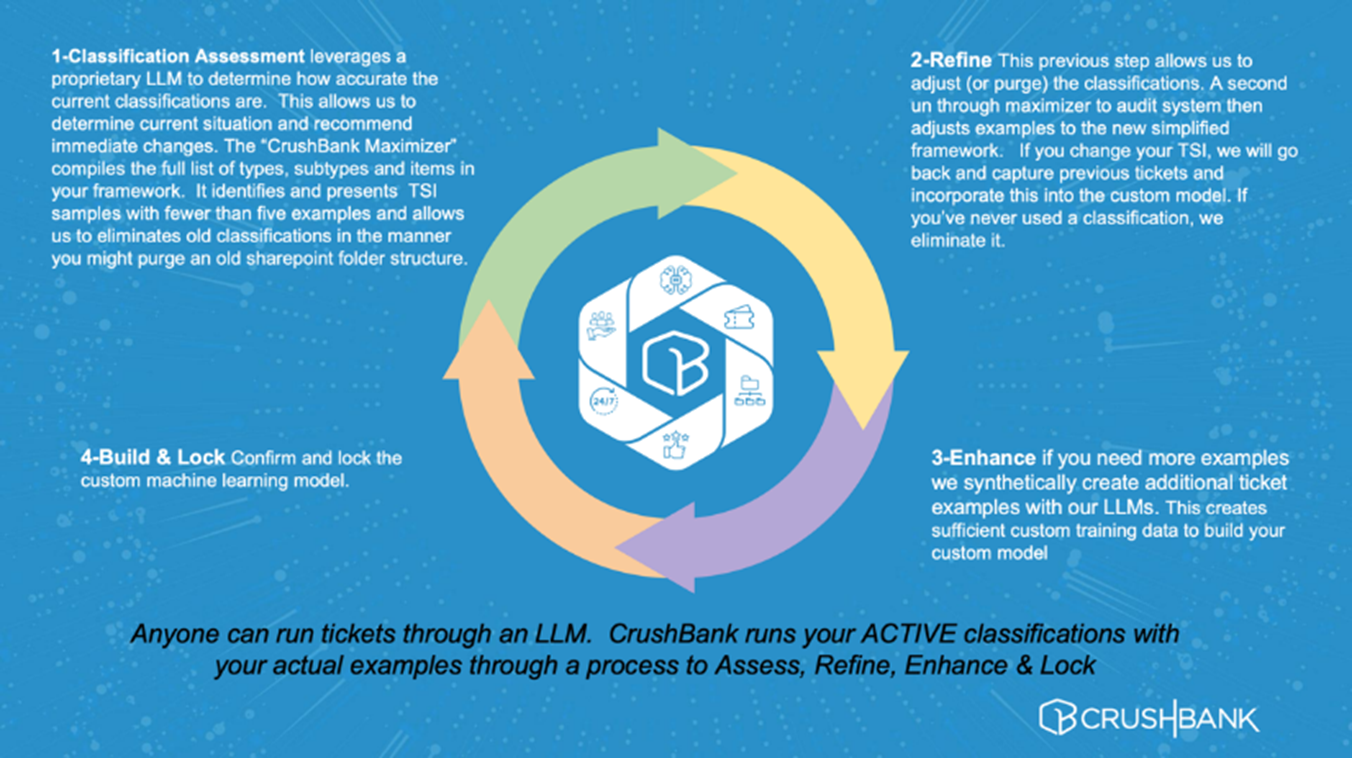 Figure 1: How ticket data flows seamlessly from ConnectWise into CrushBank for classification and optimization